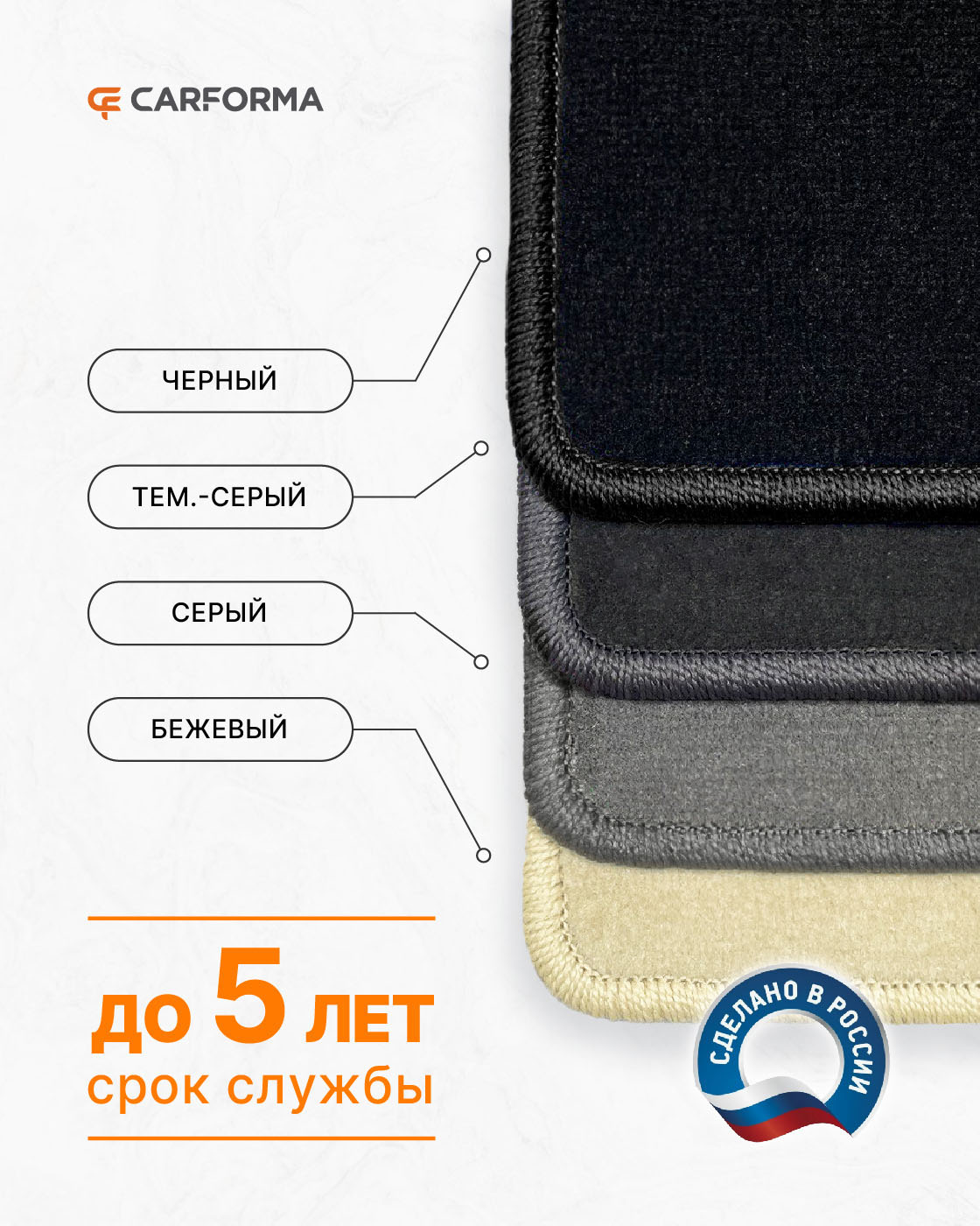 Ворсовые коврики CARFORMA имеют толщину 5, 8 или 10 мм в зависимости от ценовой категории.